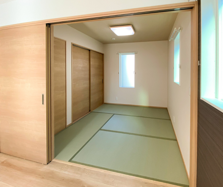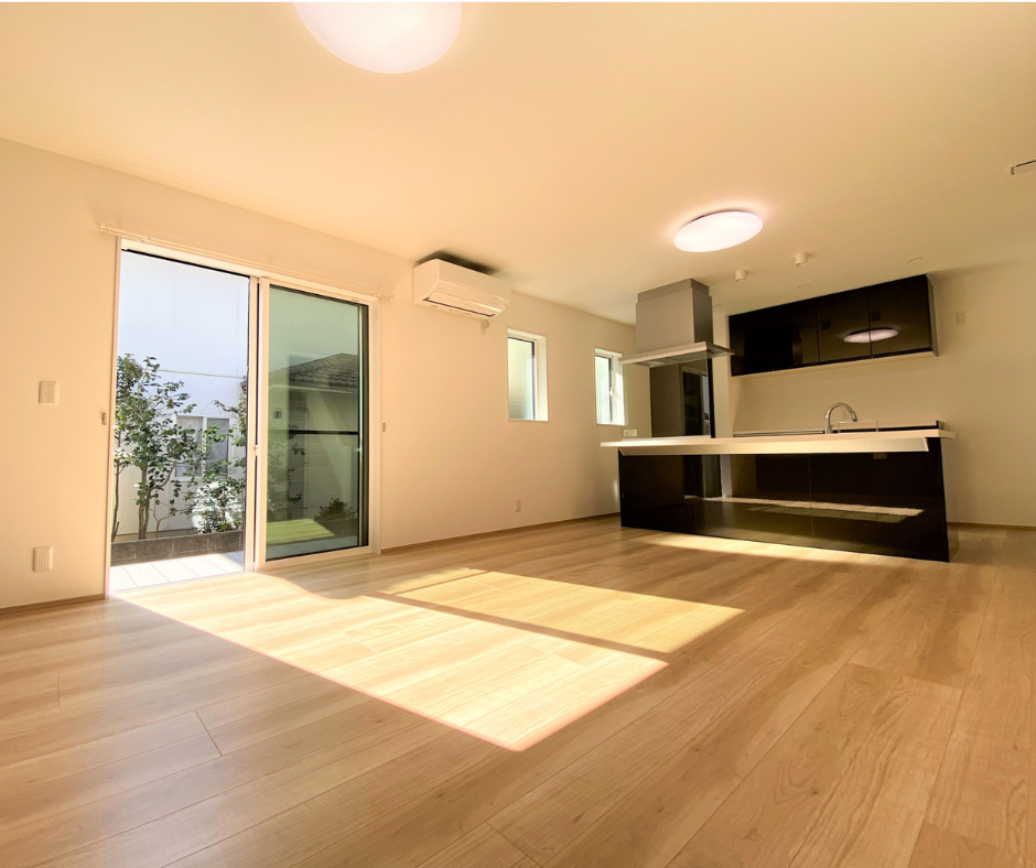 LDKから続くウッドデッキはおうちに居ながらアウトドア気分を楽しむ事ができ、お子様が遊んでいるのもリビングから見守ることができます。 セカンドリビングとしてのくつろぎスペースや、実用的な物干しスペースなど色々な場面で重宝しそうです。