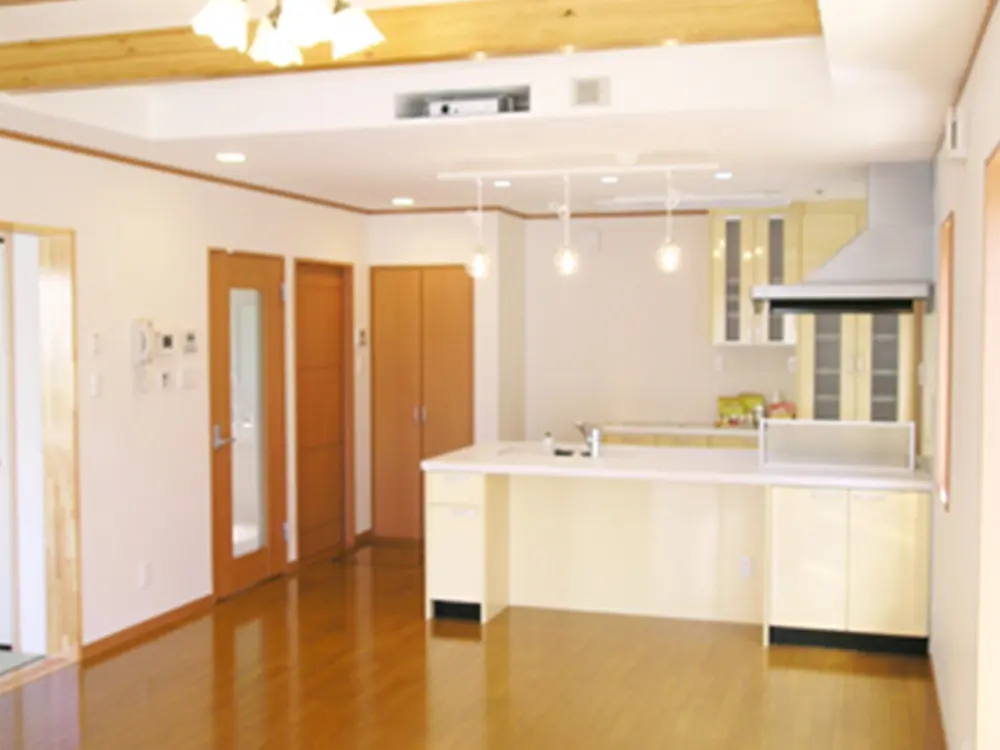 リビングの天井は構造の梁を見せて木造住宅の色を出しています。