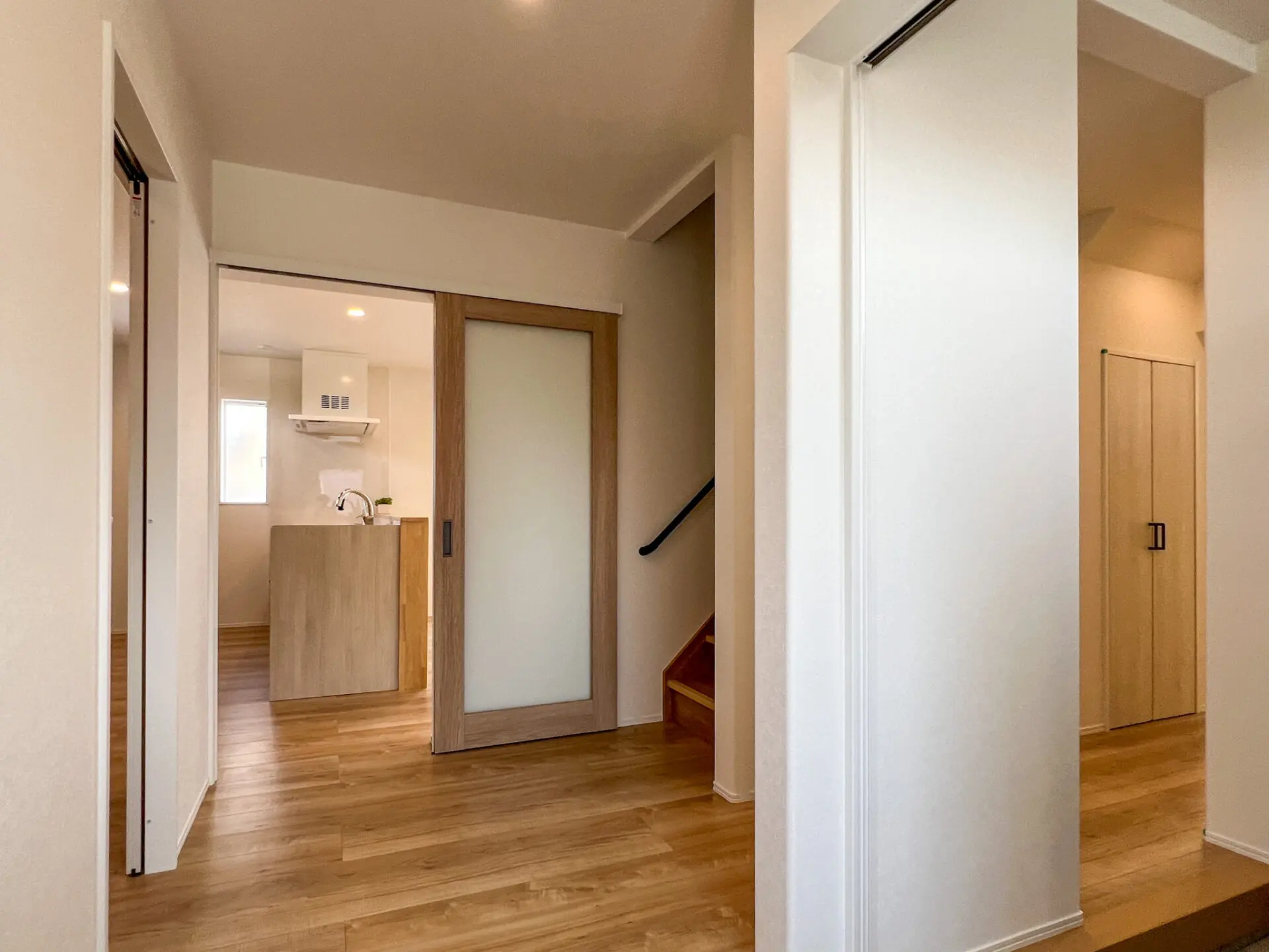 玄関には土間収納があり、扉で仕切ることができるので急な来客時にもすっきりと見せることができます。