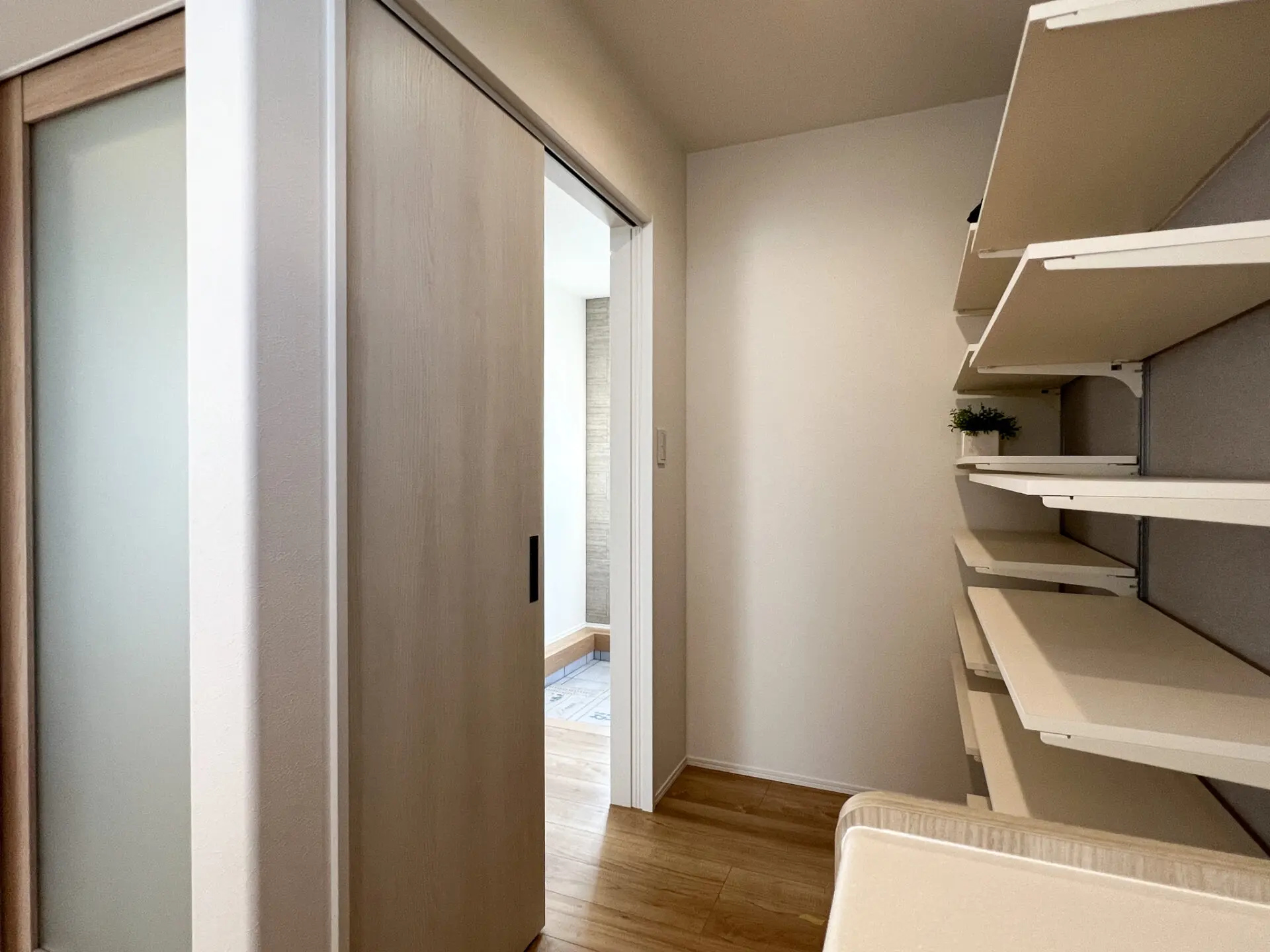 ユーティリティスペースはランドリールームを兼ねており、その広さは4畳!収納棚や洗濯機をおいても余裕があります。