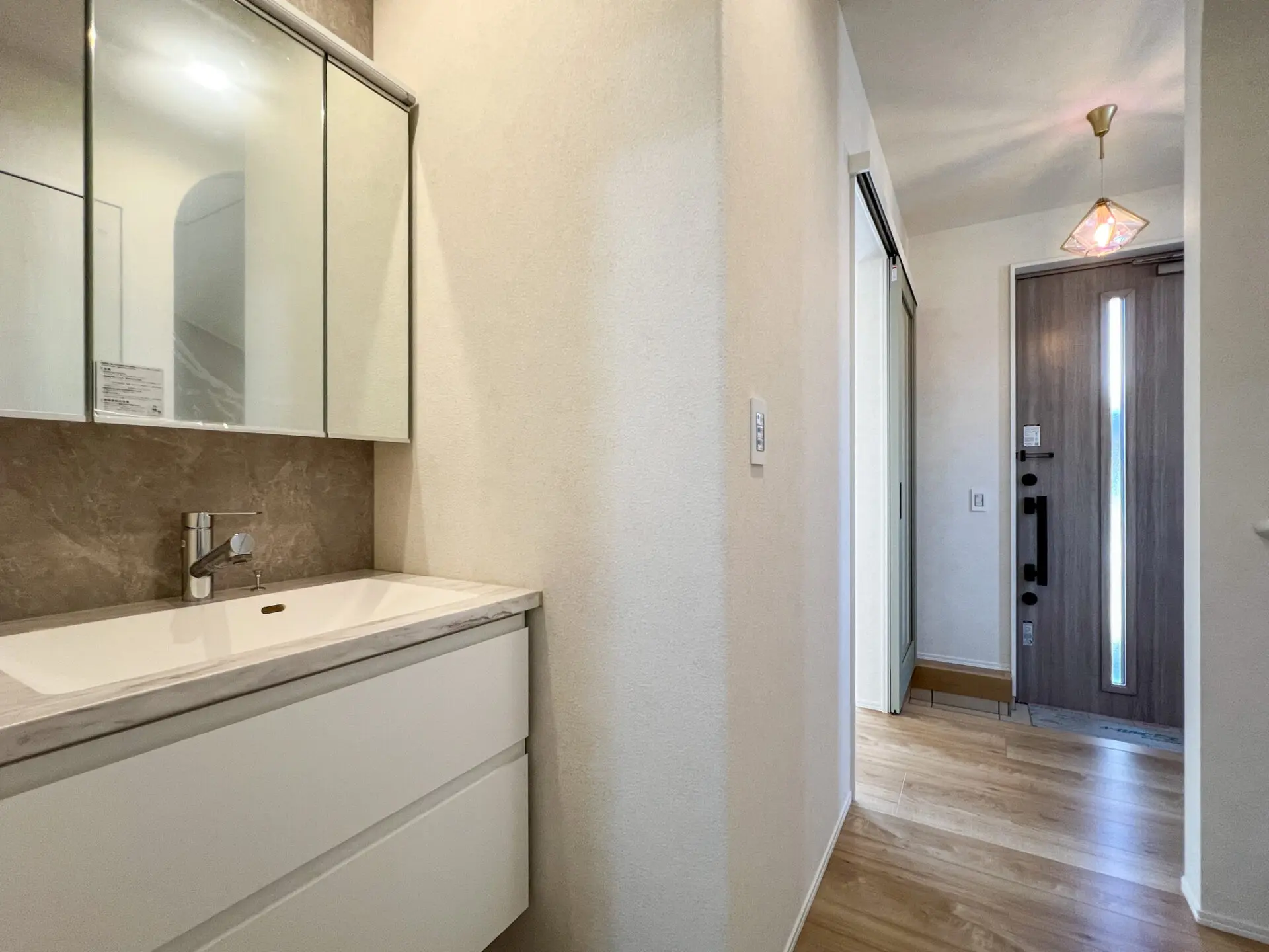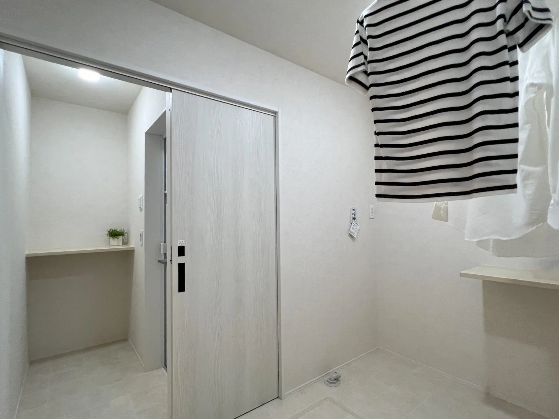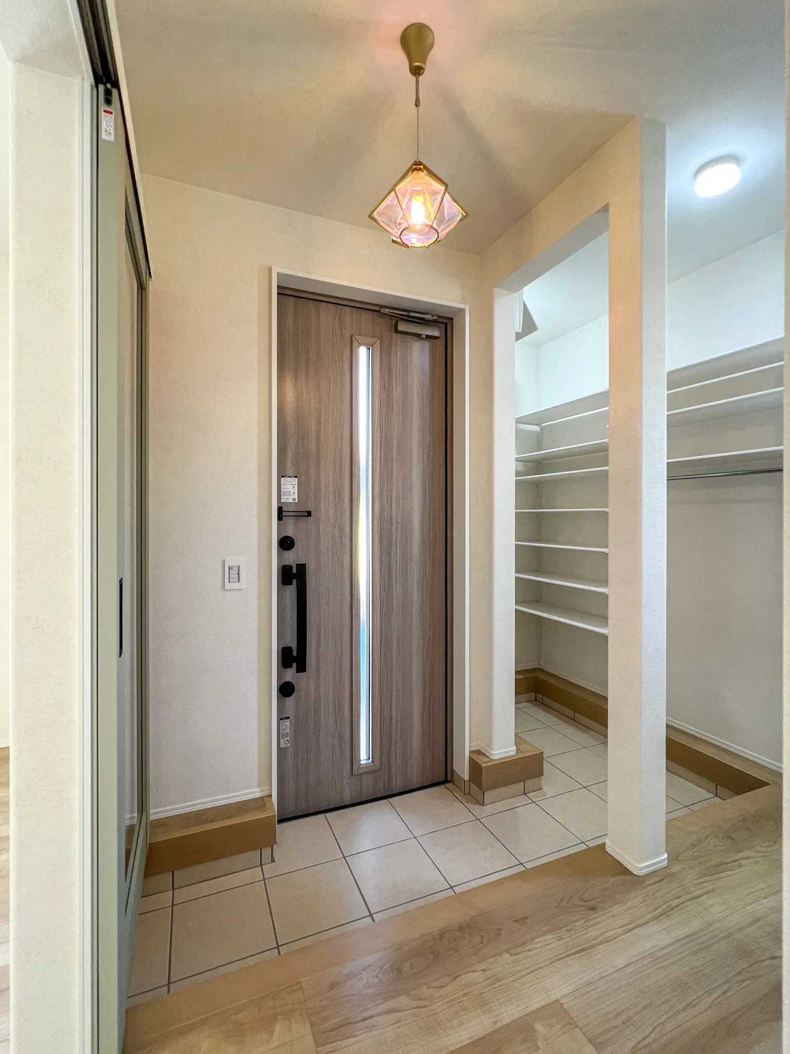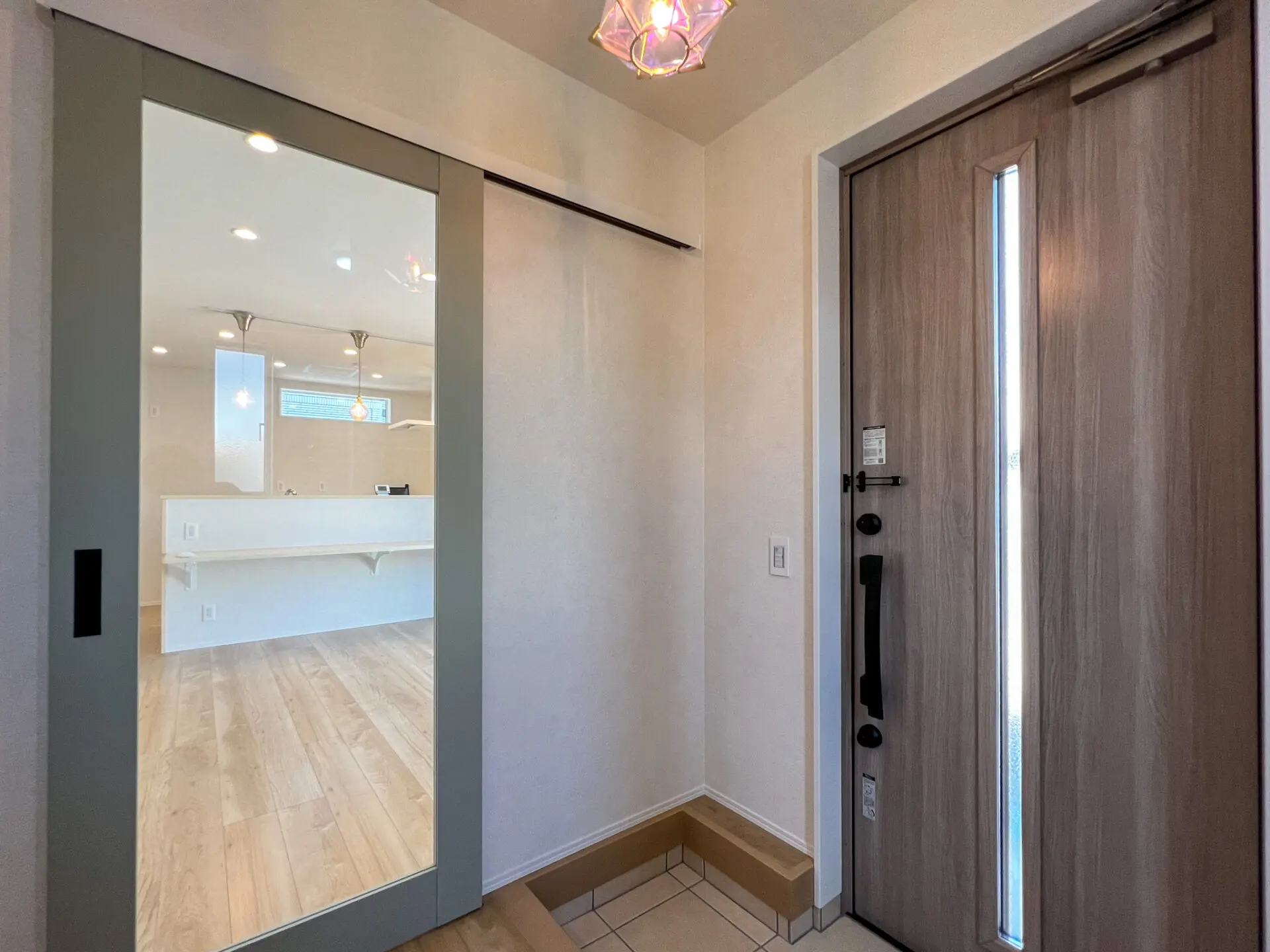 LDKへ続くガラスドアは玄関側体と意外と部屋の中が見えないよう工夫が。