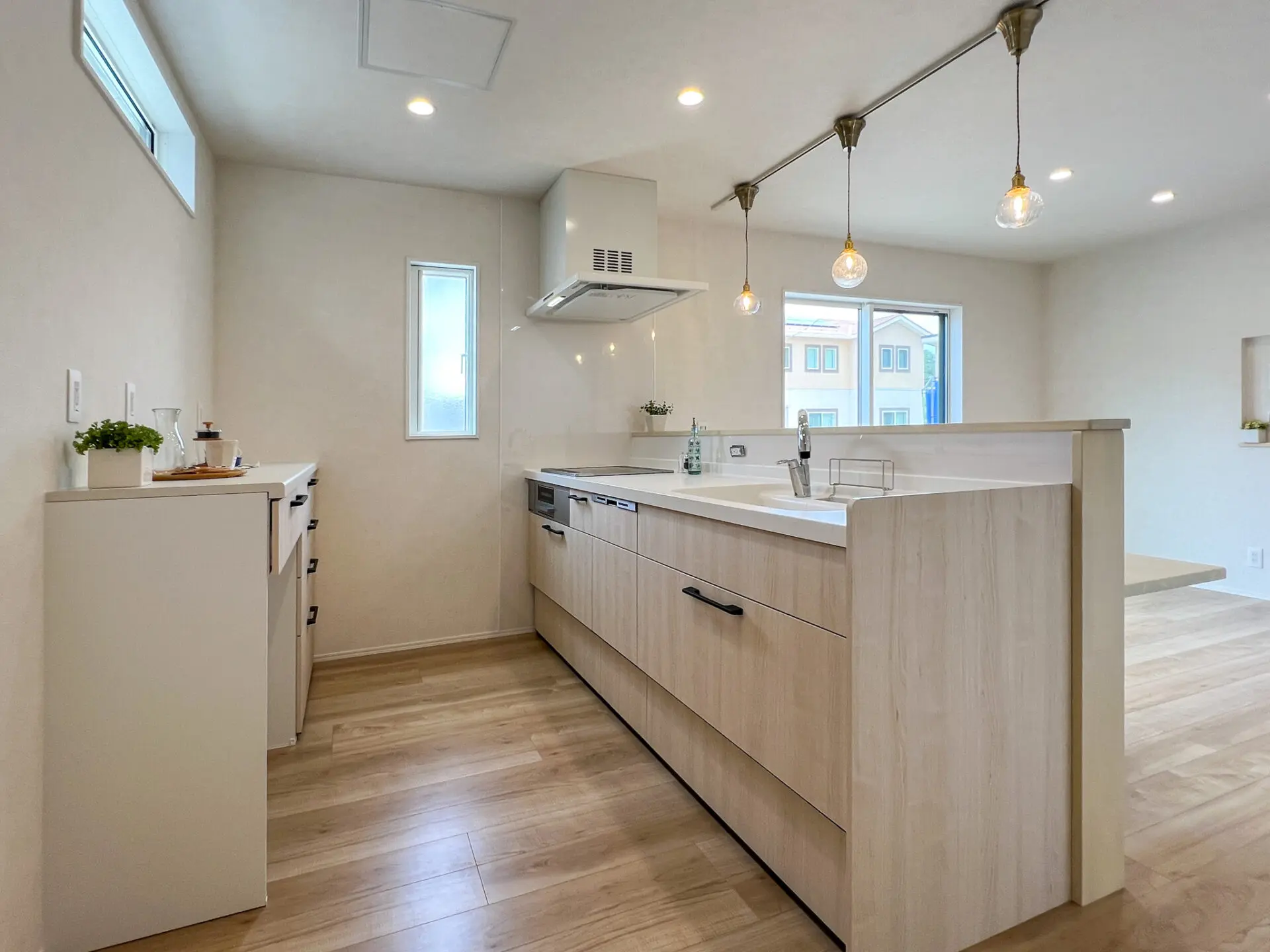 キッチン、レンジフードもお部屋全体のトーンに合わせて。