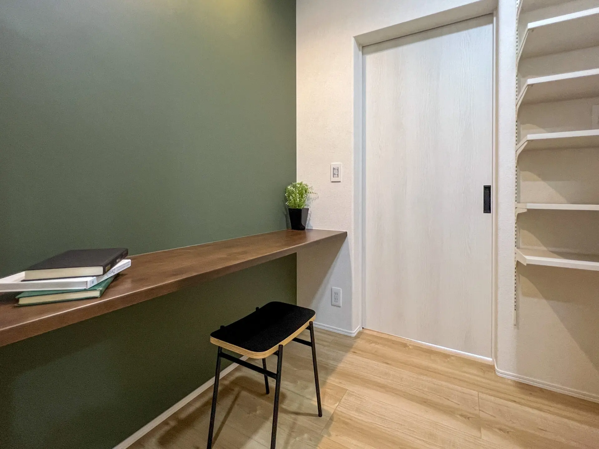 LDKの隣には落ち着きのあるワークスペースと大容量のウォークスルークローゼット。