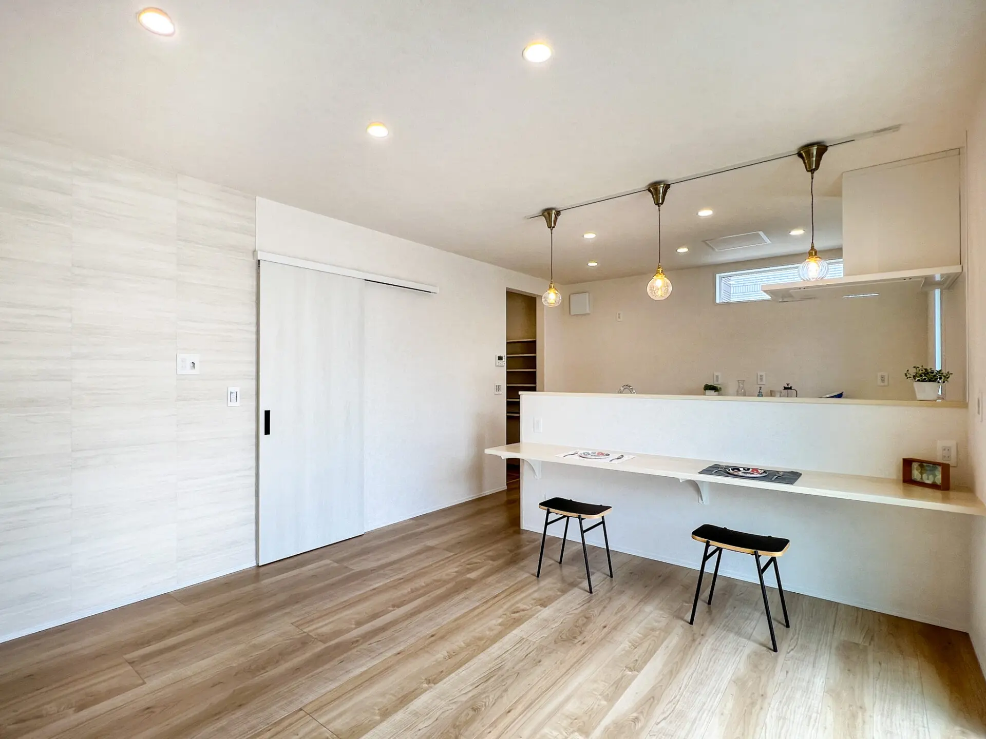 将来的に2部屋に仕切れる設計で、そのままでも開放的に使用が可能。