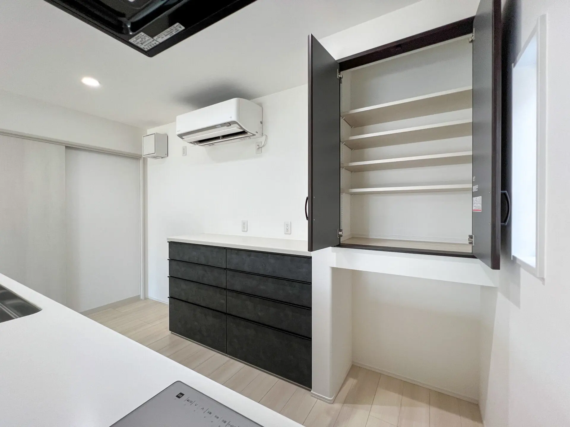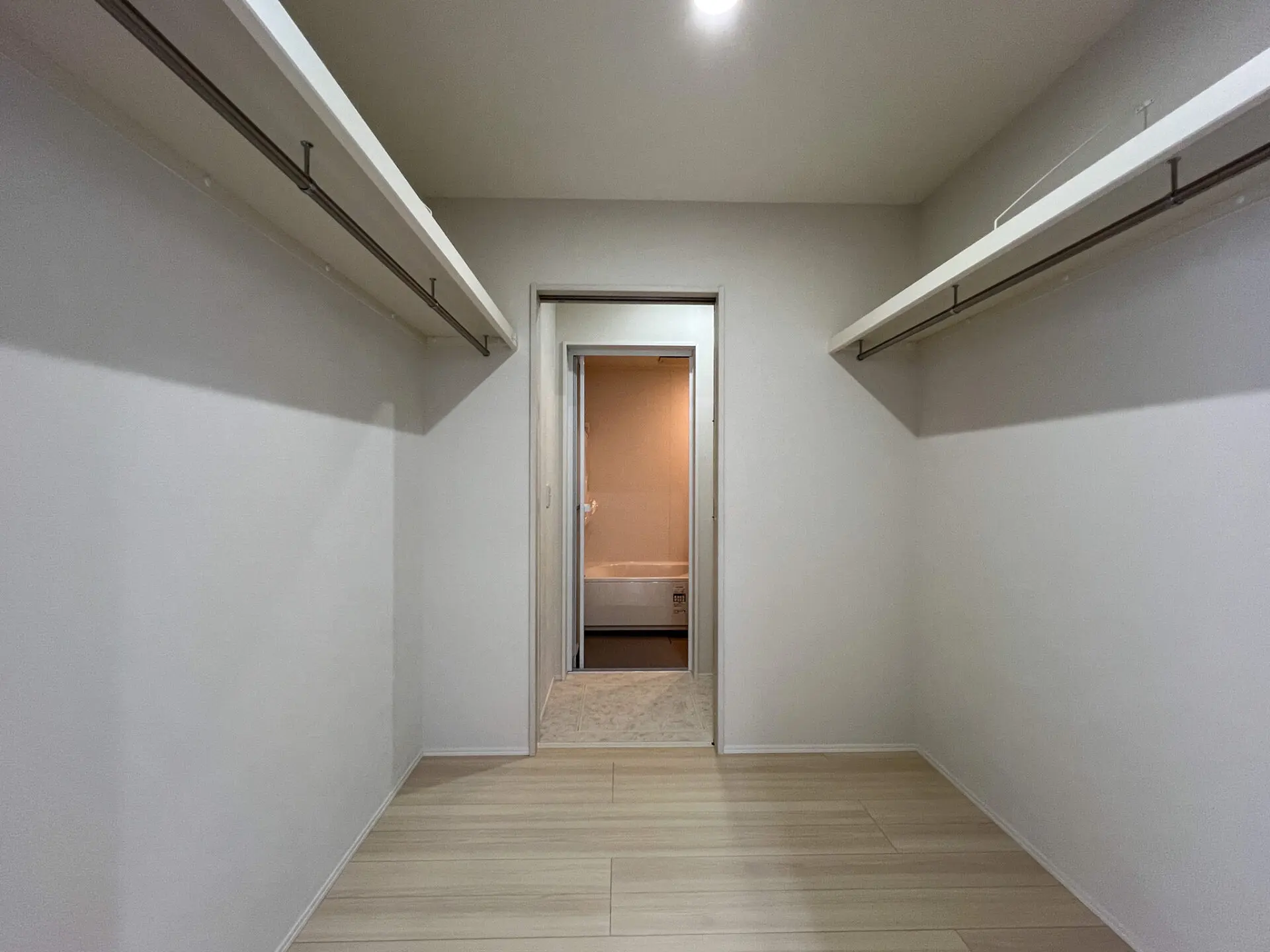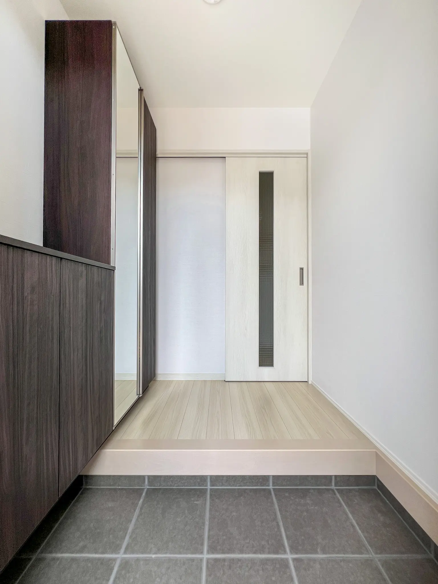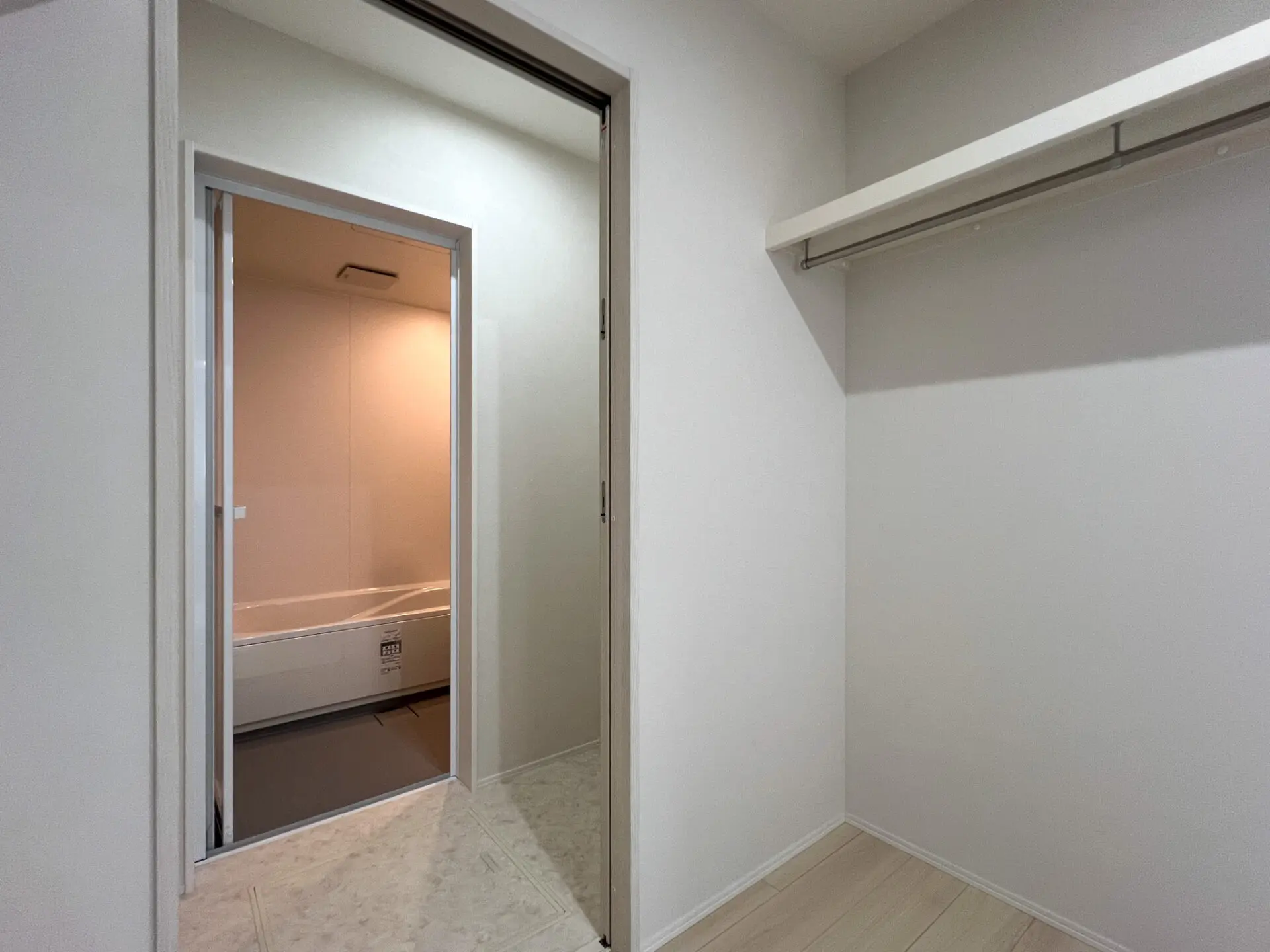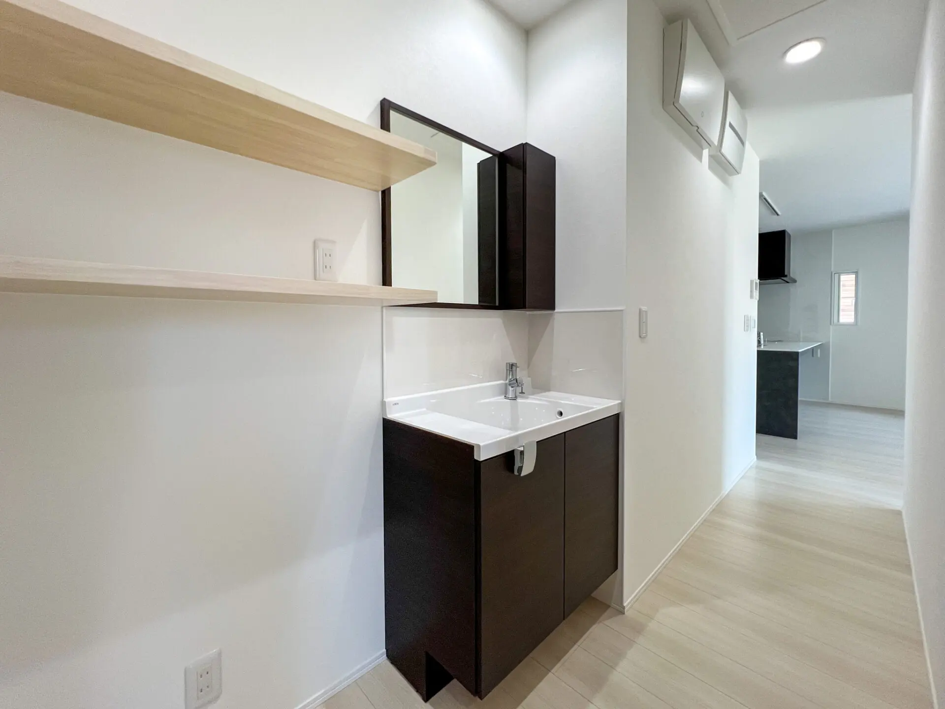 玄関から部屋へ入る際必ず通る位置に洗面台を設置