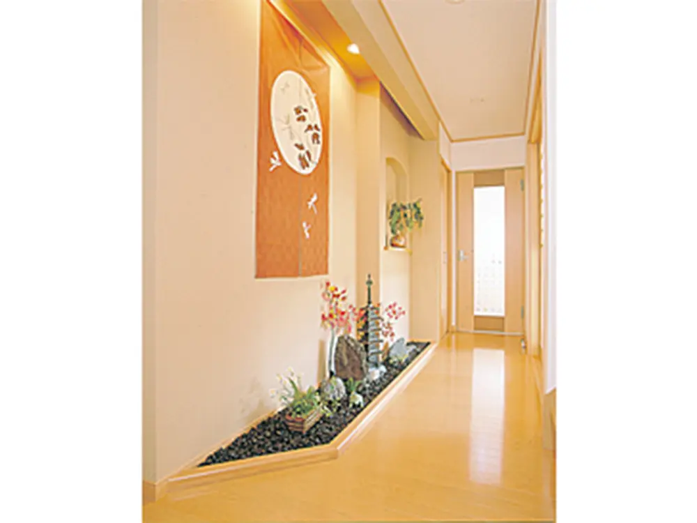 玄関ホールは、和の趣を取り入れたギャラリースペースになっています。