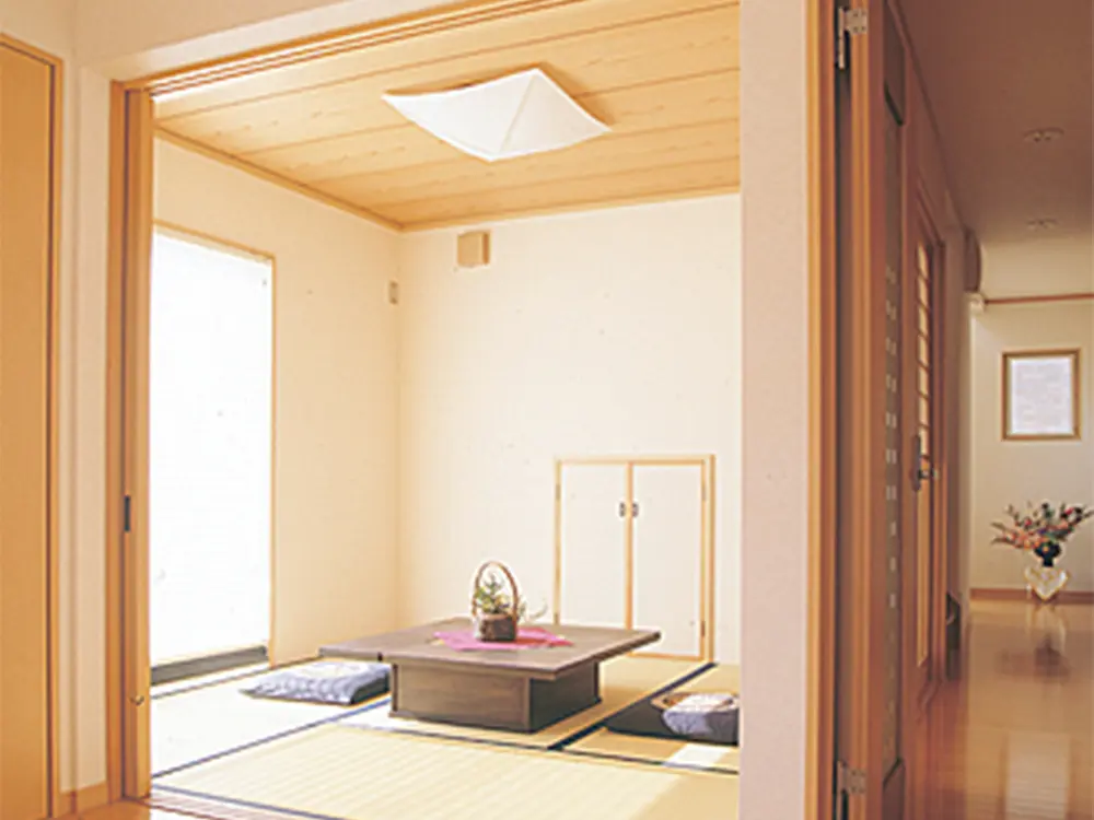 リビングにつながる和室は、引込戸にしているので開ければ広々とした空間になります。