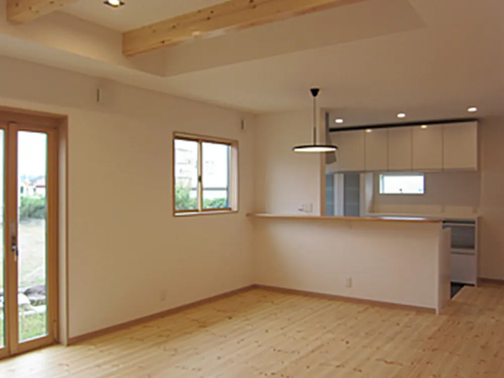 1階床は、無垢のフローリングを採用。ご主人様のこだわりです。