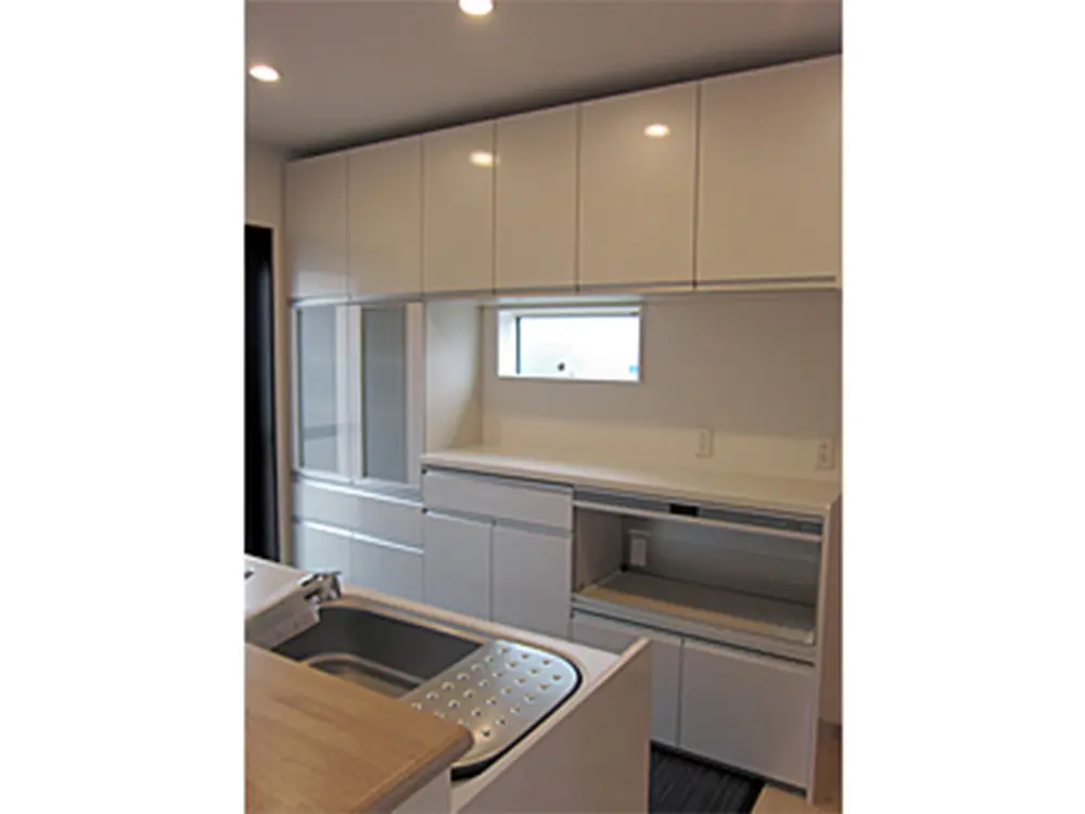 キッチン後ろの収納には、食器以外も収納出来てとても便利です。