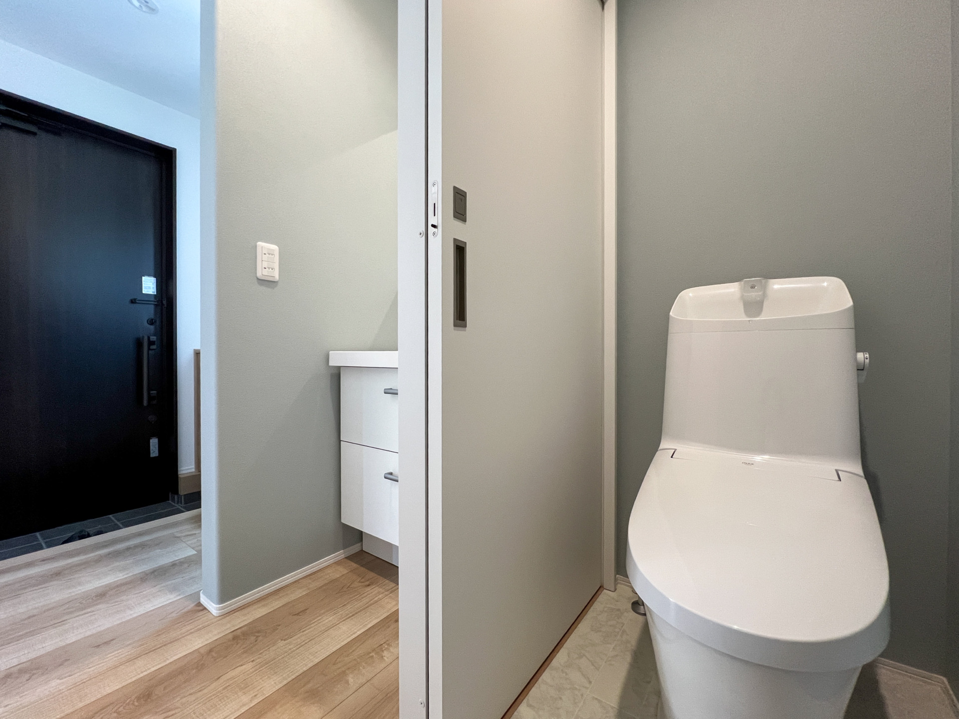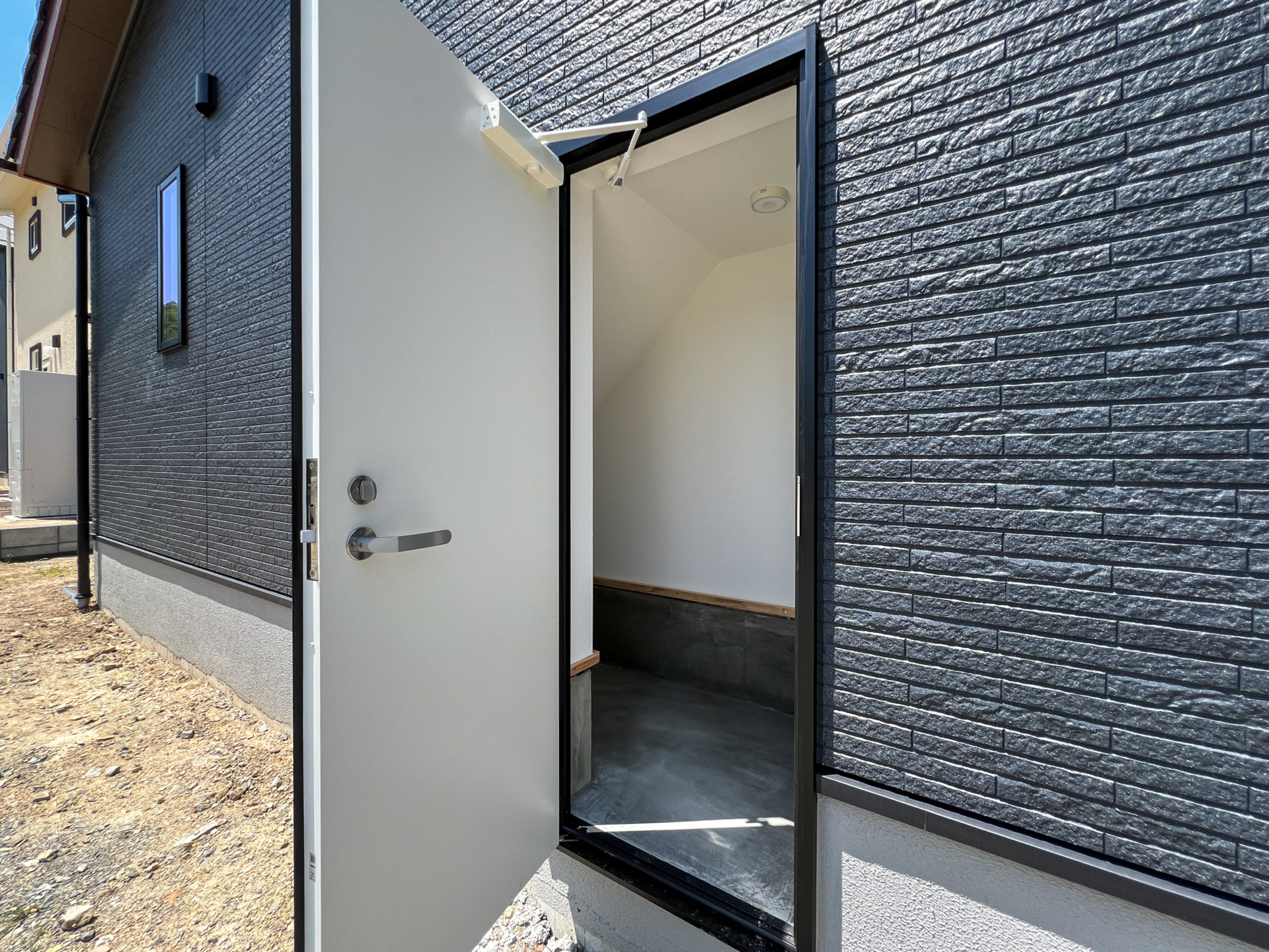 愛猫と心地よく暮らすことを考えて設計された、コンパクトながら遊び心あふれる住まいです。 玄関から洗面・浴室へ直接つながる動線で、帰宅後の手洗いや外出準備もスムーズに完結。扉は引き戸で統一し、移動しやすい間取りにしています。 平屋ながらロフトを設けることで大容量の収納を確保し、猫が自由に上がれる空間としても活用。 スリットから顔をのぞかせる愛猫と目が合う、まるでネコカフェのような暮らしを楽しめるお家です。